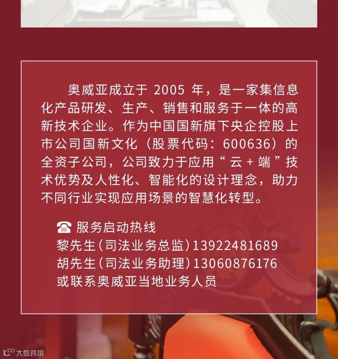 导读:奥威亚全方位全流程提供互联网庭审综合服务