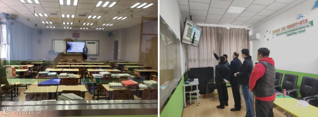 图为杏花岭区教育局刘委员、电教馆王馆长现场观看录制效果