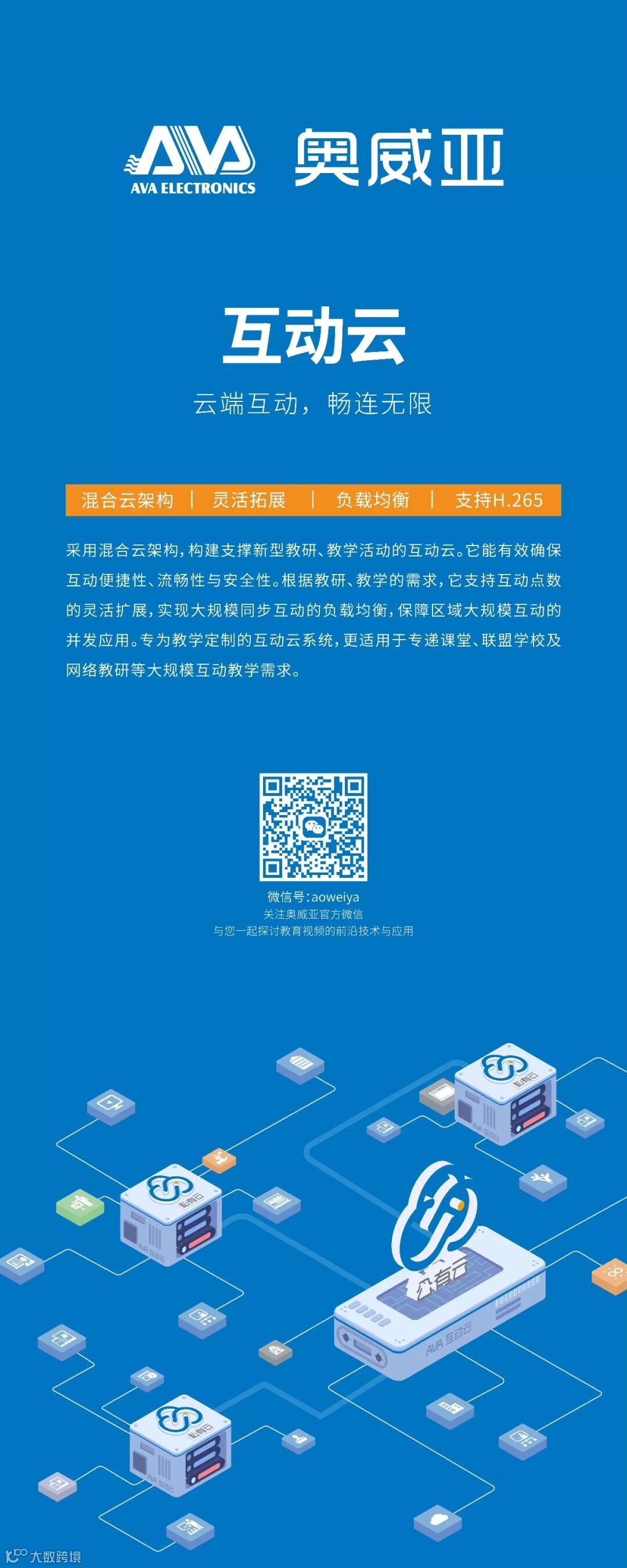 在长期的行业沉淀中,奥威亚“互动云”应运而生。专为教学定制的互动云系统,更适用于专递课堂、联盟学校及网络教研等大规模互动教学需求。
