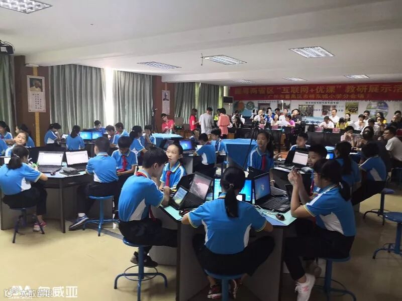 图1-2:广州市番禺区市桥东城小学远程会场观看直播并参与研讨