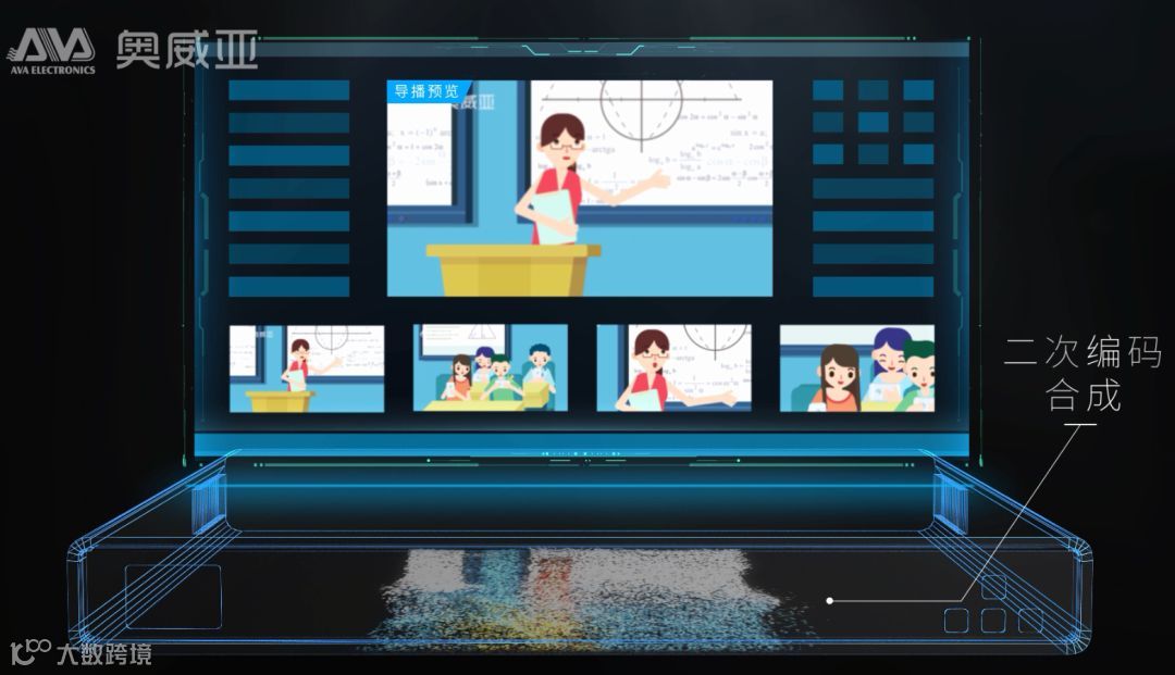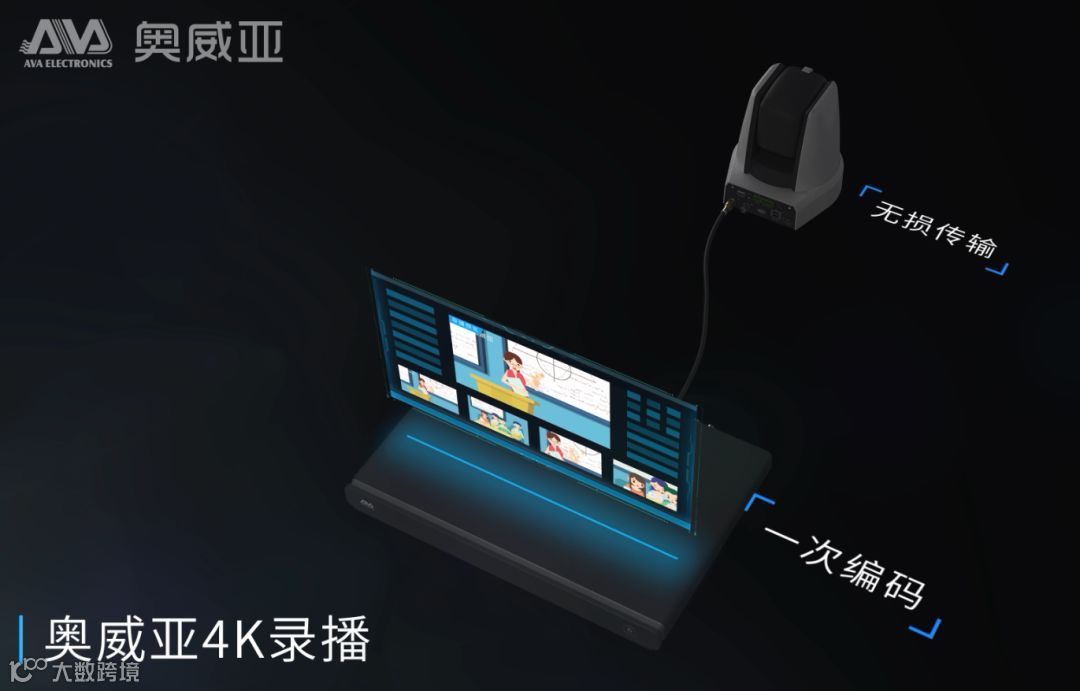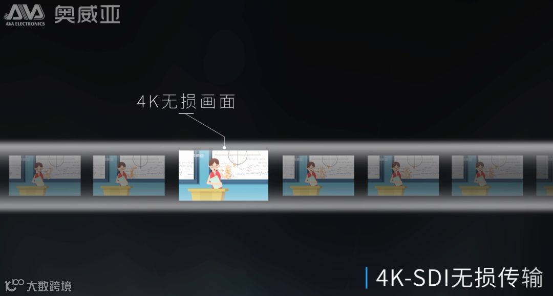 奥威亚自主研发4K-SDI传输技术,4K云台摄像机无需编码,即可把3840*2160的超高清画质传给4K录播主机,主机接到数据后进行编码。