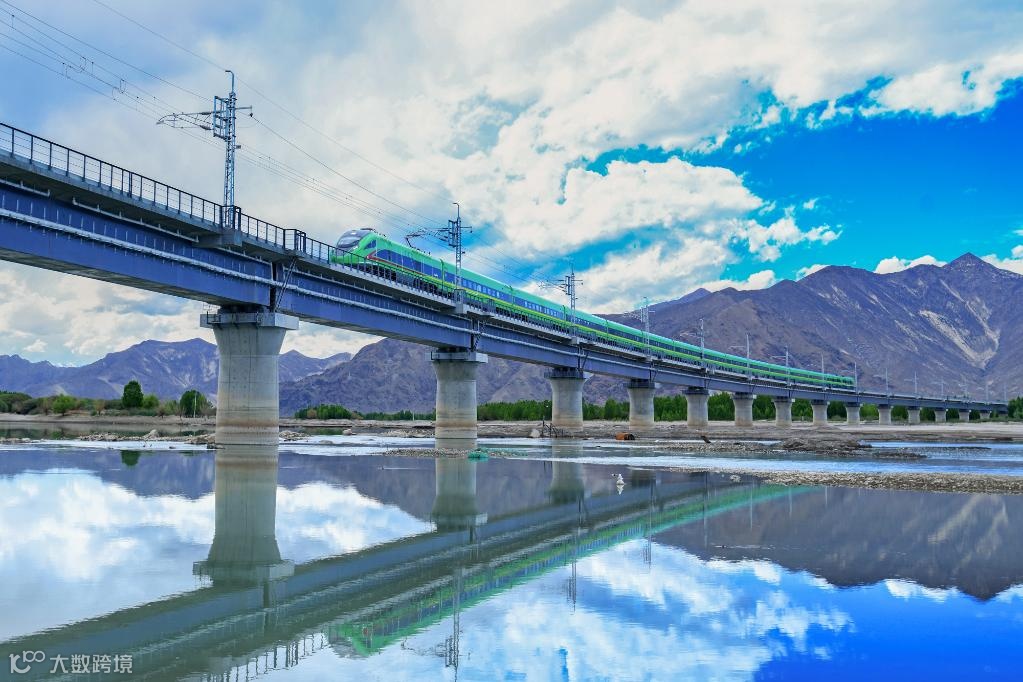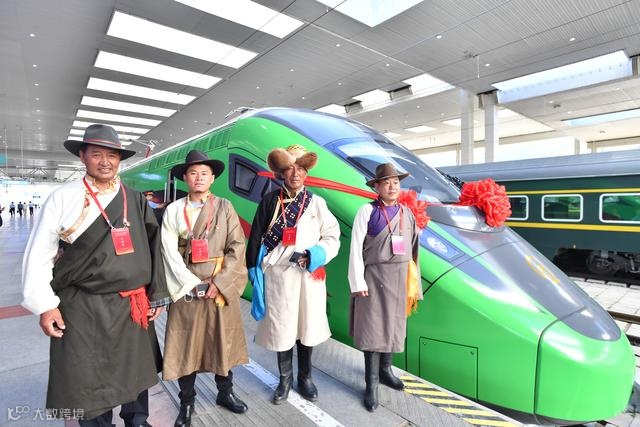 2021年6月25日,西藏首条电气化铁路建成通车,乘客与复兴号合影。新华社记者 觉果 摄