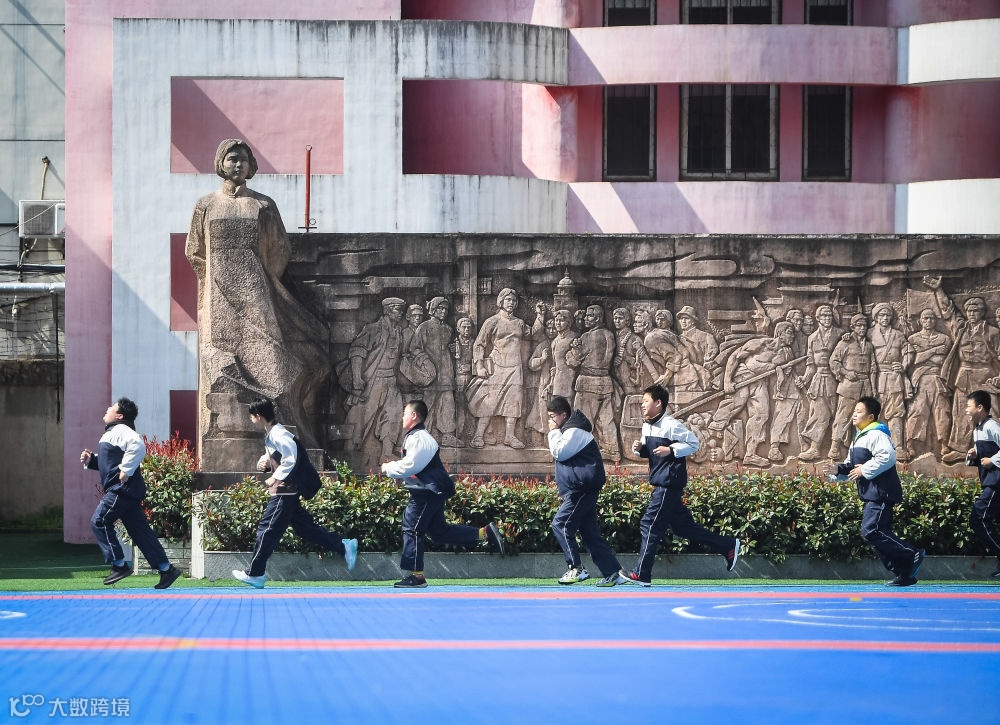 2021年3月5日,武汉市二十一(警予)中学学生从向警予烈士塑像前跑过。新华社记者肖艺九 摄