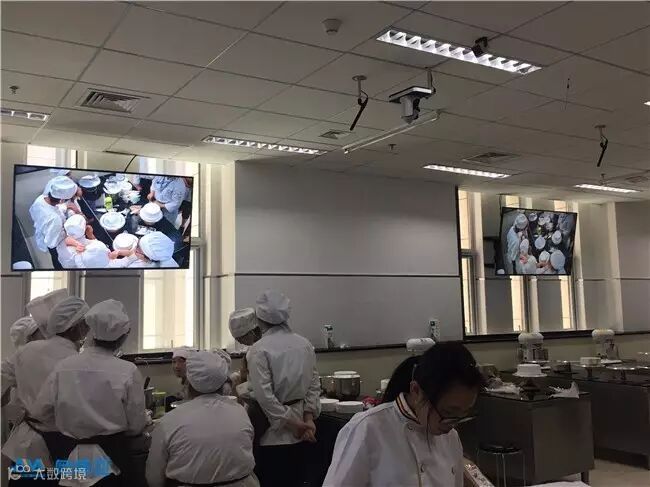实训基地主要供学生学习、训练西点西餐制作技能使用。老师只需站在带有奥威亚全高清云台摄像机的工位上进行示范操作,学生们就可以通过课室里的高清大屏方便地观看与学习,而不需要里三层外三层地围着老师。这种做法,避免了传统实训中因场地、人数等限制因素而产生的教学质量下降的问题。