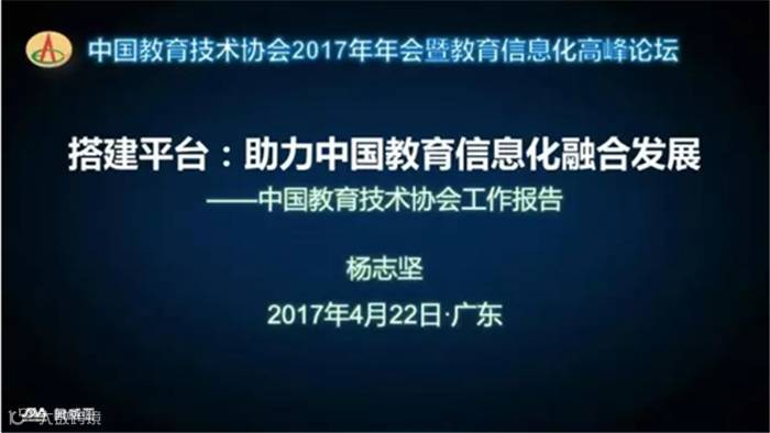 中国教育技术协会会长杨志坚向会员代表作了题为“搭建平台:助力中国教育信息化融合发展”的工作报告。