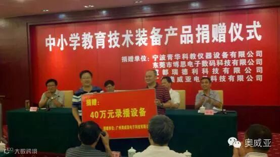录播设备是有效推动教育资源共享、促进教育公平的数字化教学设备,录播教室在泸州市的覆盖使用,为实现区域优质教育均衡提供了有力的技术保障。作为长期致力于中国信息化教育事业发展的录播企业,AVA一直热心于教育公益事业。为了支持泸州教育信息化建设,缓解优质教师资紧缺压力,在去年“四川省中小学教育技术装备现场会”上,AVA总经理欧俊文向泸州市教育技术装备所捐赠了价值40万元的AVA全高清录播设备,用于泸州市录播教室建设,推动泸州市优秀教育资源共享,而上文提到的城北中学的录播教室正是由AVA捐赠的其中一间。