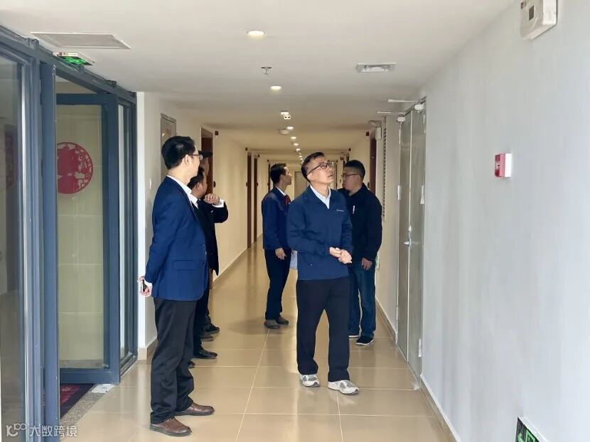 为使各参会人员对中乌大楼有直观认识,也为咨询讨论更务实有效,会议正式开始前,陈劲带领各参会代表先后参观中乌大楼9楼、11楼、14楼及楼顶天面,实地查看大楼建设布局、结构、走廊管线、设备设施、户型间隔及公共设施等现状。