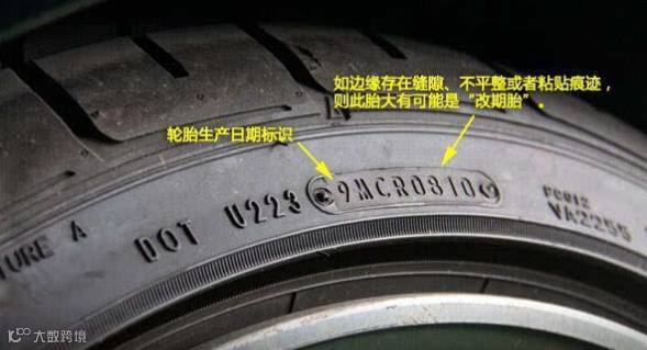 5、标记:据专业人士介绍,正规全新轮胎出厂后,轮胎外侧都会带有“TWI”或小三角等磨耗标识,而翻新后的劣质胎标志是作坊自己贴上的,所以用手抓抠标志,也可以辨别。