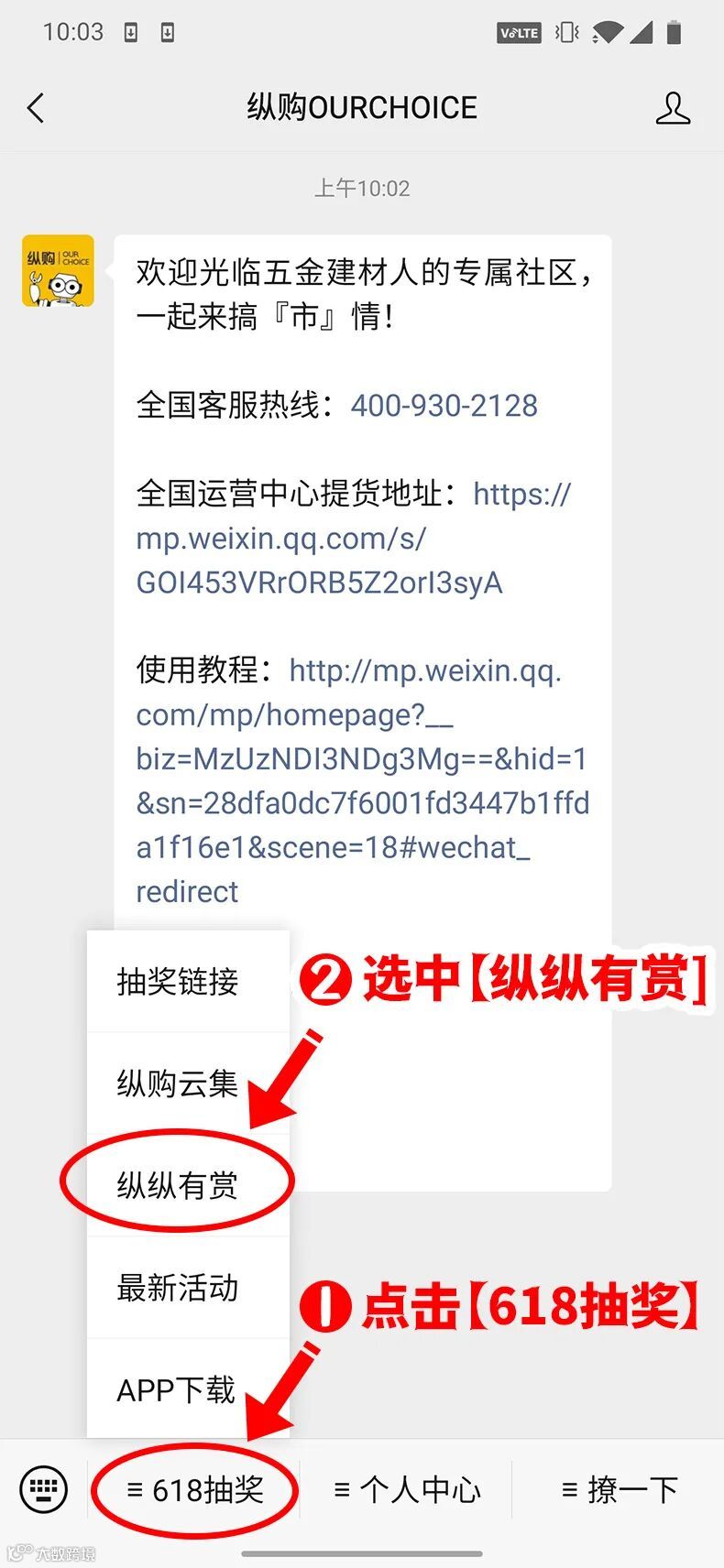 首先,在公众号下方菜单栏中点击【618抽奖】-【纵纵有赏】。
