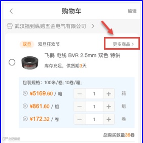 购物车中如有正在参加活动的商品,可直接查看整个活动商品的列表。