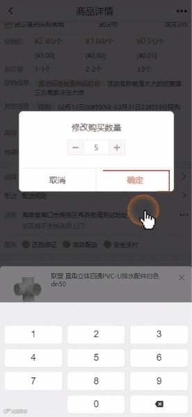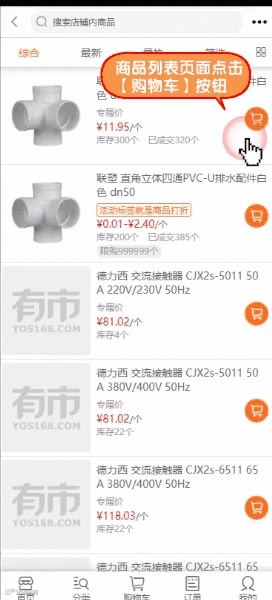 店铺商品列表页、商品详情页点击【选择规格】/【加入购物车】按钮,在弹窗中直接输入采购数量,即可同时添加多个商品到购物车。