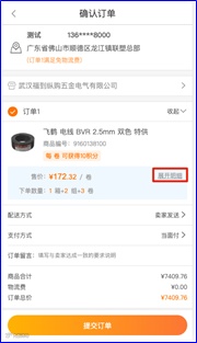 售价下单明细默认收起,包含售价(单价)、下单数量。