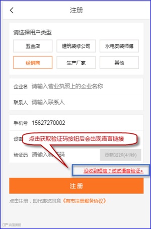 点击【获取验证码】按钮,然后会在按钮下面出现链接提示获取验证码,再点击语音链接即会触发电话发送语音验证码。