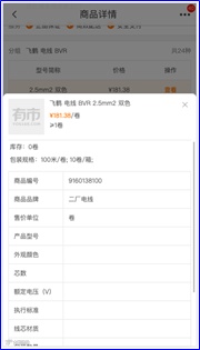 点击【查看】按钮,弹出浮层,如图3所示。浮层包含商品图片、商品名称、单价、起批量、商品活动标签、专款购标签、商品积分、限购规则、库存、包装规格以及商品规格参数。