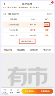 点击下方【展开全部型号】展开所属商品分组下所有商品,如图2所示。
