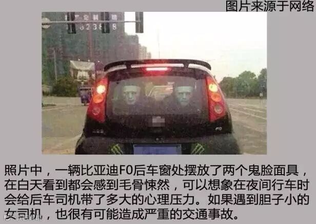 扬州市民冯女士就是一名受害者。冯女士因聚会,所以回家的比较晚。在她行驶到一个红绿灯处时,突然看到前车后窗上有一个恐怖的骷髅头,当时就将冯女士吓傻了,忘记采取制动措施,一头撞上了前面车辆的尾部,造成了追尾事故。