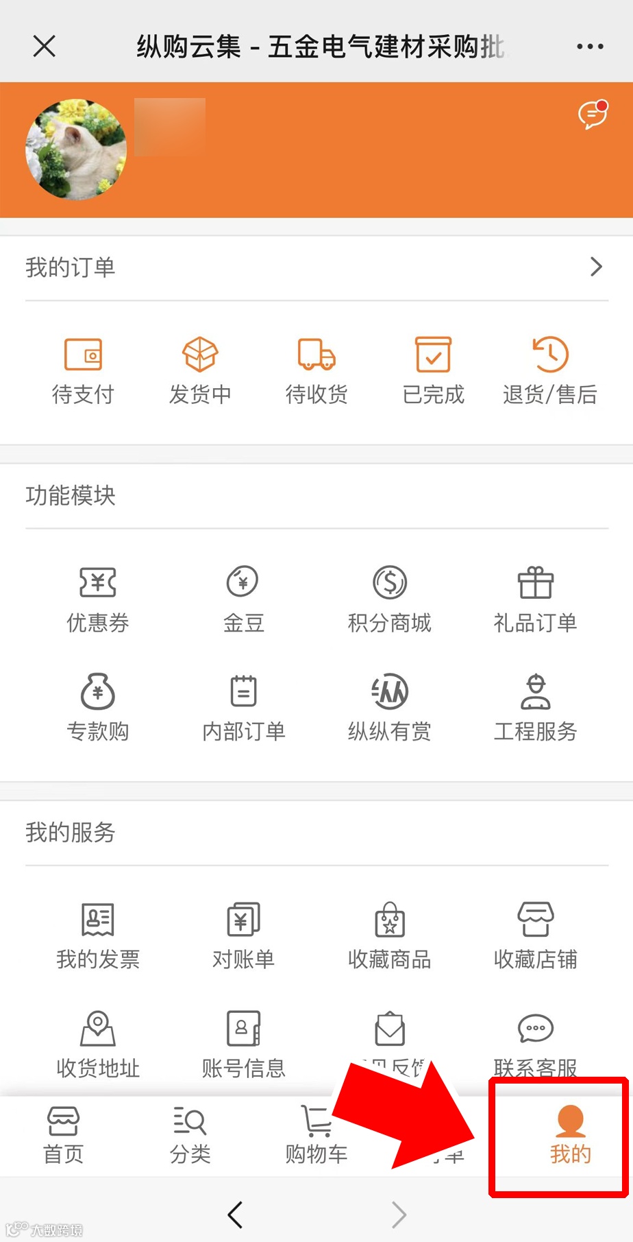 进入纵购云集,点击右下角【我的】;