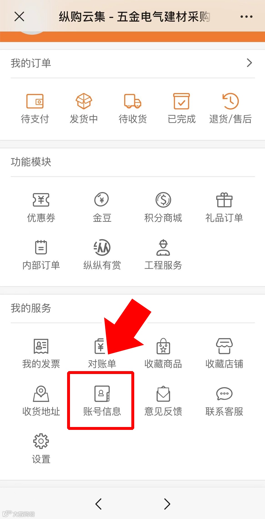 在【我的服务】板块找到【账号信息】,点击进入;