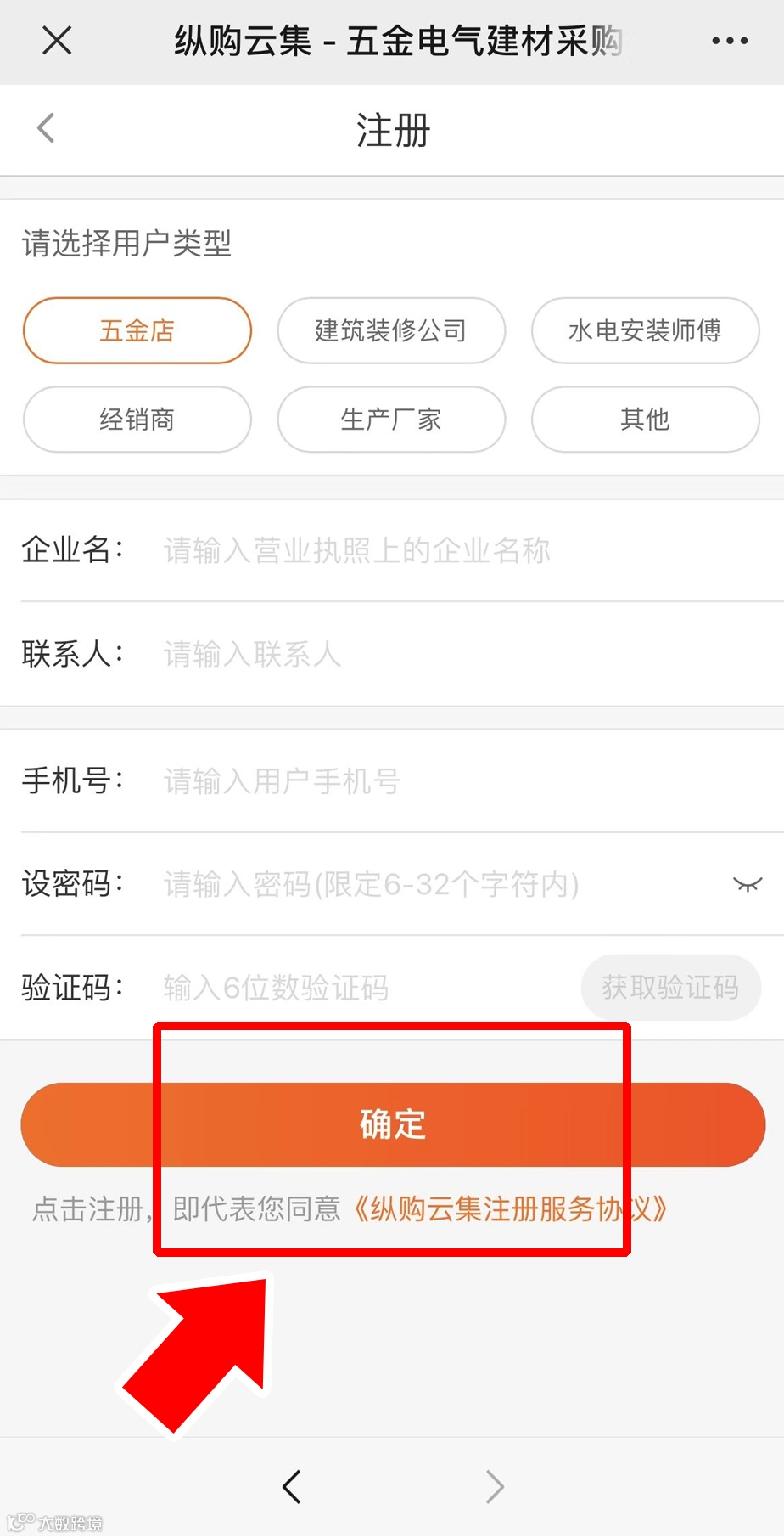 选择用户类型并填写用户信息,确认无误后,点击【确定】。