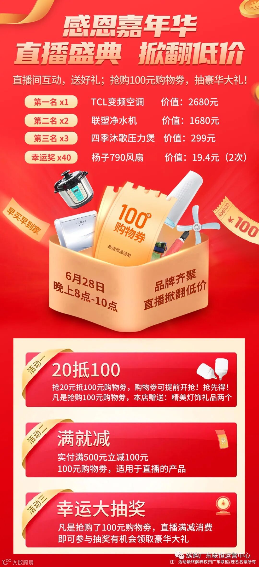 袭掀翻低价!钜惠全场!6月28日晚上8点,锁定联恒纵购直播间!优惠多多!惊喜不断!豪华大礼,送!送!送!