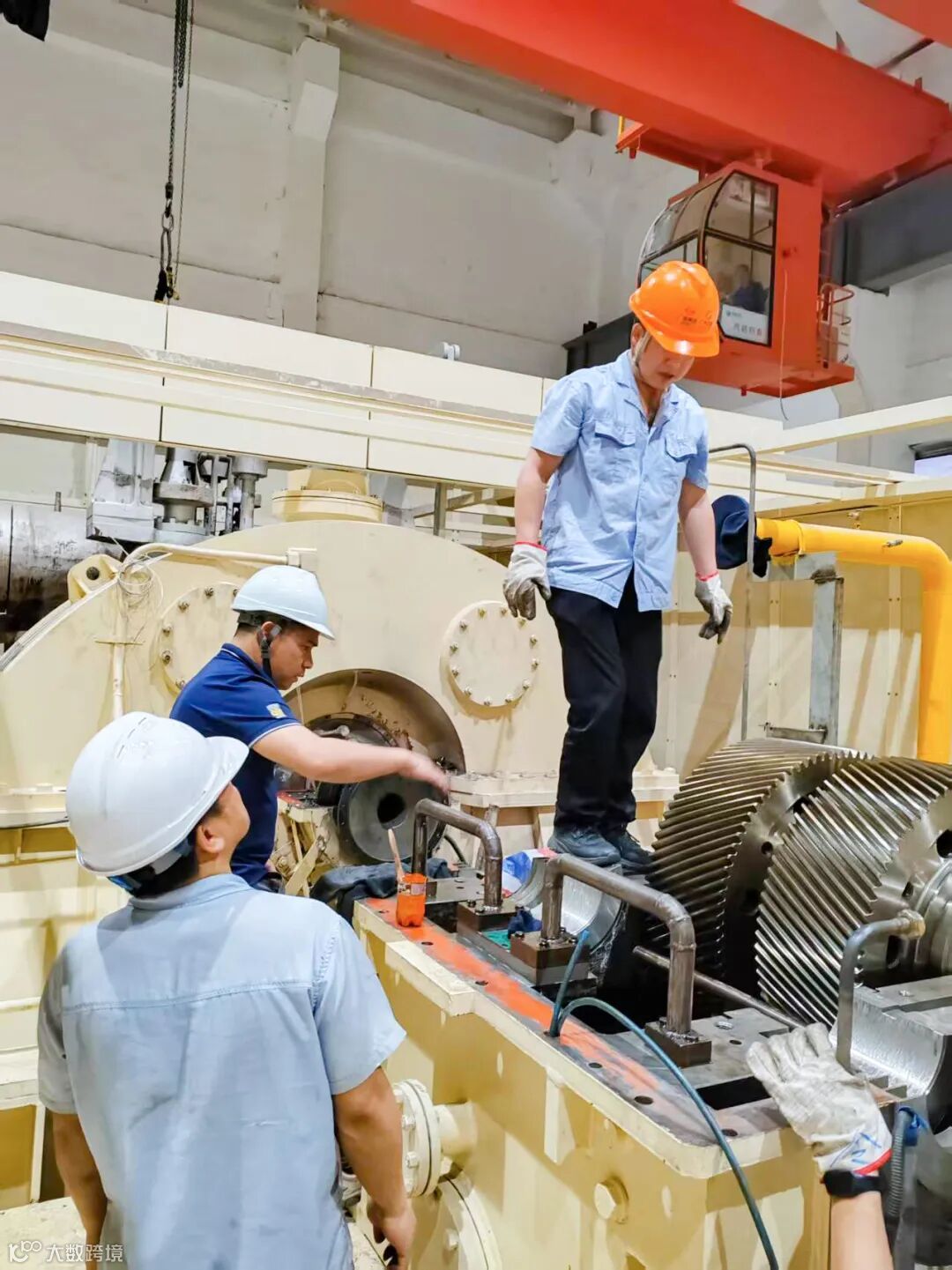 在对机组全面检查后,现场团队锁定症结所在——齿轮箱高速轴前瓦上瓦严重损坏,需更换新瓦。如若按照常规更换流程,这一工序需要2 - 3天时间才能完成,极大可能影响到客户既定的开机计划。面对这一突发情况,广重工程服务部连夜商定切实可行的施工方案,协调增派三名专业人员驰援现场。次日清晨,增援团队抵达后,与现场团队紧密配合,在珠海康恒环保业主的全力支持下,连续奋战,争分夺秒完成新瓦更换及调试工作,确保1#汽轮机组在计划时间内顺利开机并网。