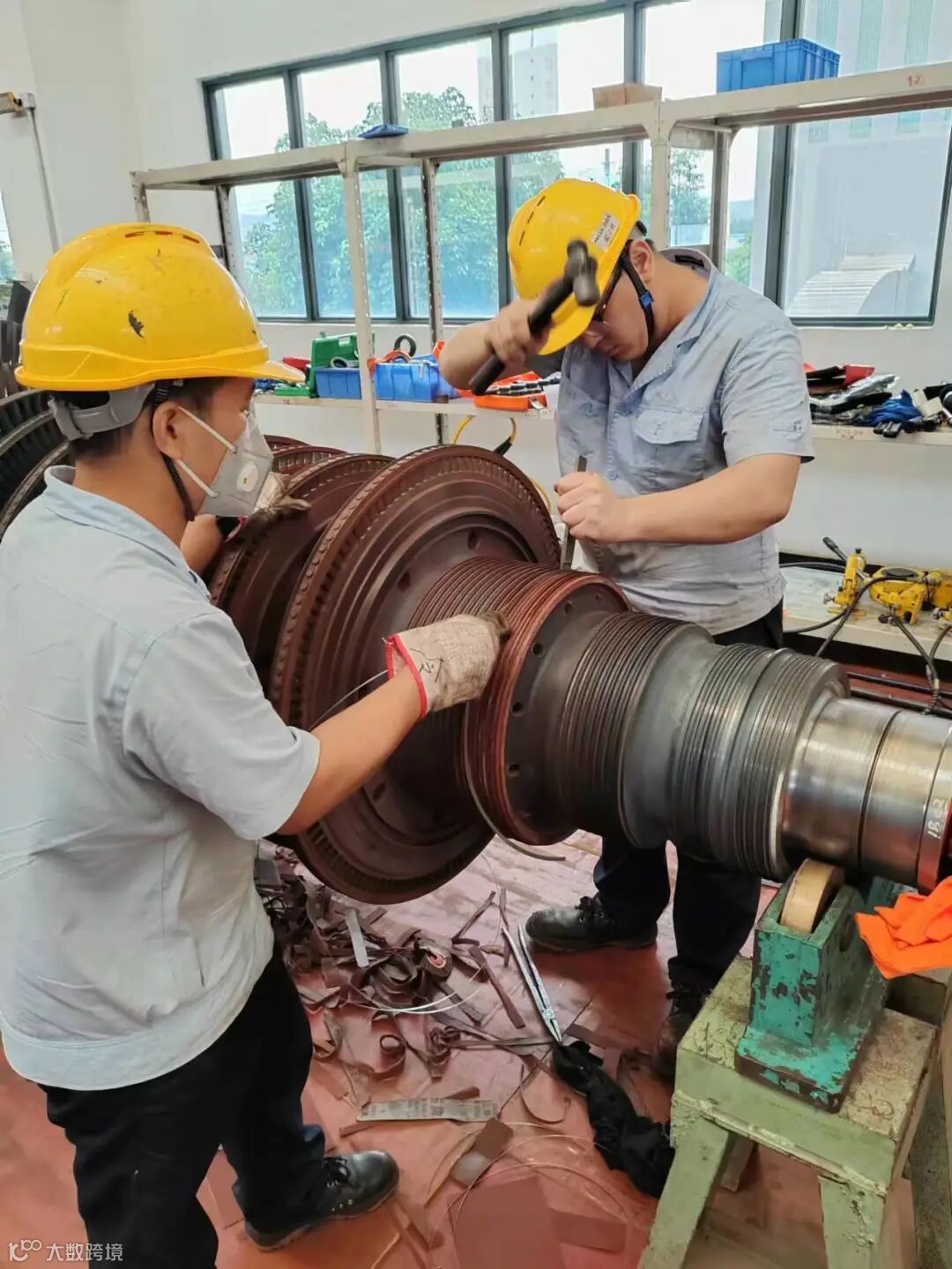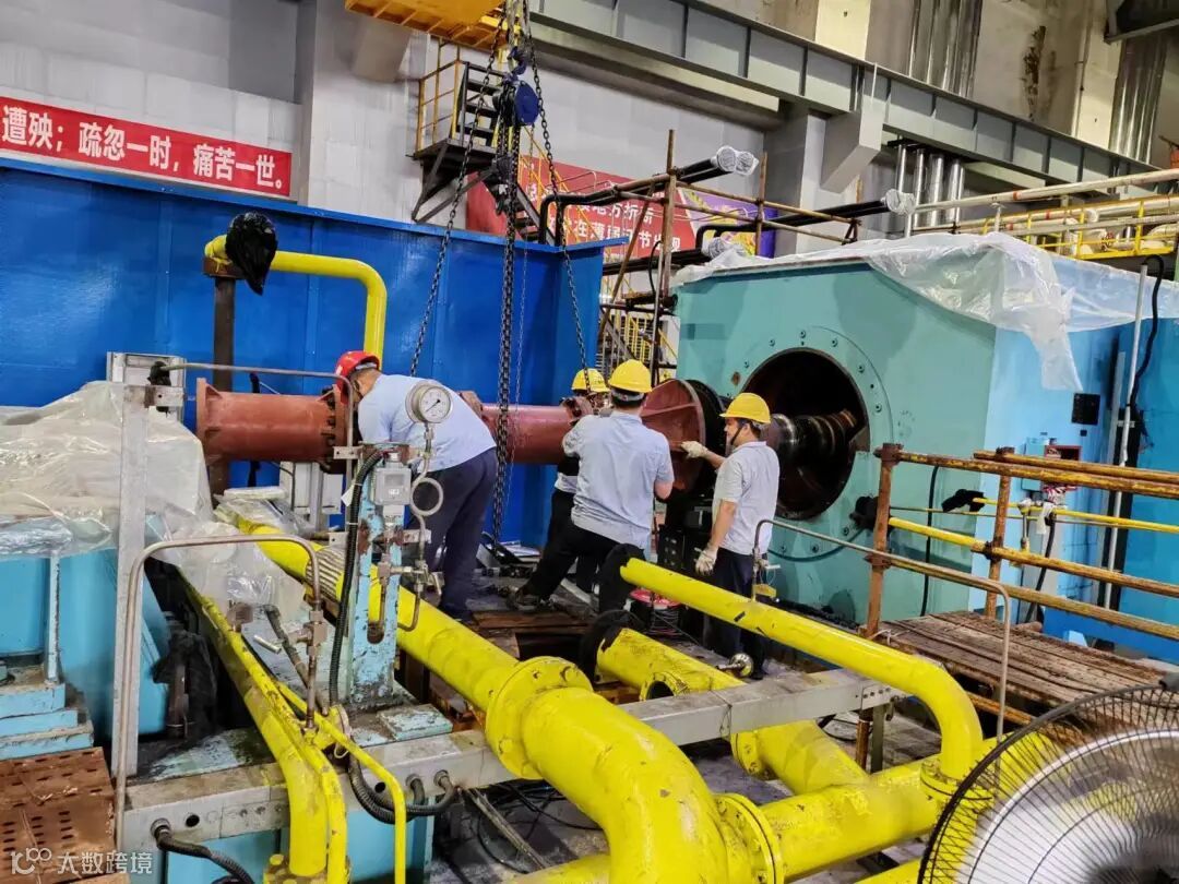 在做完所有检测项目后,广重集团售后团队递交了解决方案,工作效率和方案获得客户的高度认可。解决方案一定,广重集团售后团队便马不停蹄开干。维修过程中,广重集团售后服务团队对易积垢的系统拆卸清理、复装、调试;因设备长时间运行、工艺误差等因素造成磨损老化的部件进行修理或更换;易损耗的线缆、电缆槽盒、仪表管等采取防护处理。其中,汽轮发电机的重要部件——转子,由于服役时间过长,设备运行时机械振动幅度过大。检修人员通过对转子着色探伤、检测原始数据等方法确定症结所在,将转子返厂做动平衡,完成减重和配重,最终使设备振动幅度降低到允许的平衡精度范围内。