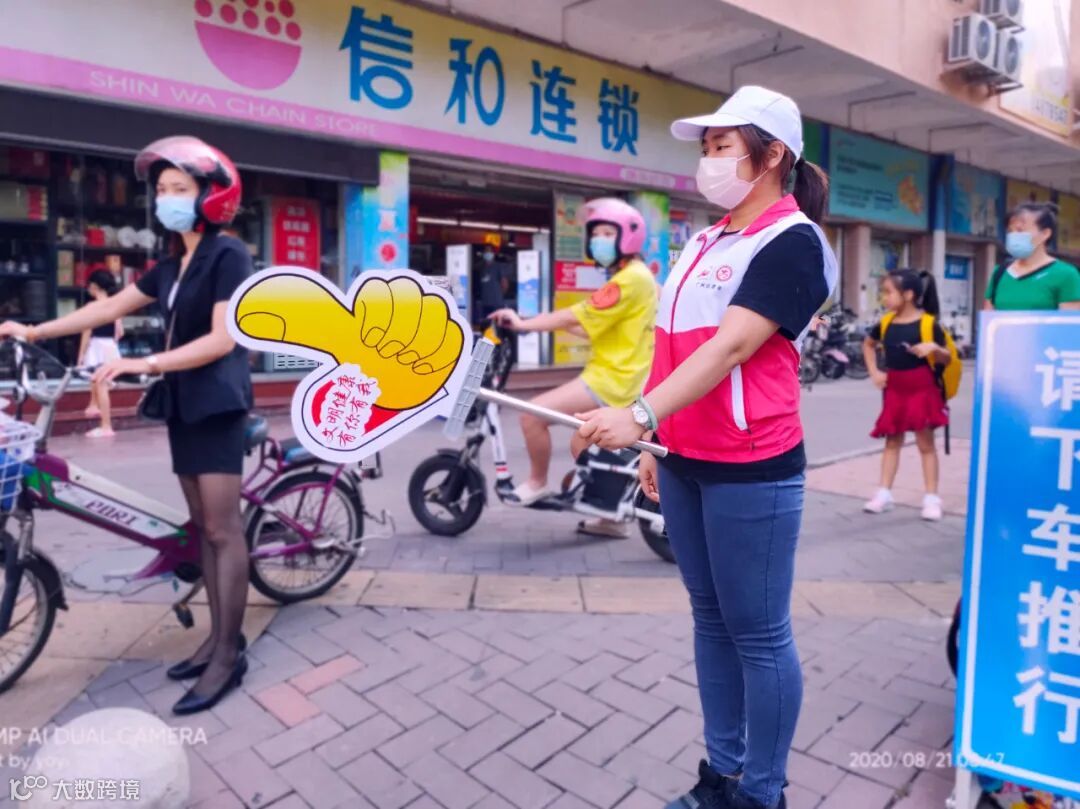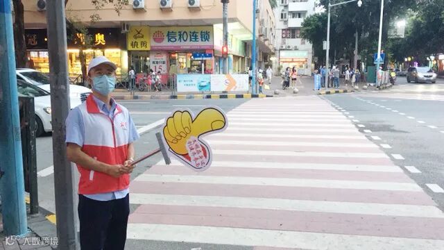 8月18日下午,企管部曾泳仪正在指引市民有序过马路,突然看到人群中一老人步履蹒跚,人没走到马路中间绿灯就已变红灯。她立即上前弯腰搀扶住老人,护送他过马路。在一旁执勤的志愿者和交警见此情景,也主动上来帮忙拦住来往车辆。在大家的默契配合下,老人顺利通过斑马线。穿着马甲、手执指示牌的志愿者们已经成为了这个酷暑最美的一道风景线。