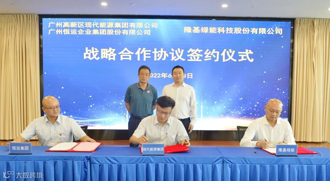 2022年6月30日,现代能源集团、恒运集团、隆基绿能公司签署三方战略合作协议,现代能源集团党委副书记、总经理肖立,现代能源集团兼恒运集团党委副书记刘贻俊,隆基绿能中国地区部副总裁倪涛分别代表各方签约,进一步聚焦新能源领域深层次合作,共同打造湾区最具核心竞争力的绿色事业。现代能源集团兼恒运集团党委书记、董事长许鸿生,隆基绿能中国地区部总裁刘玉玺,现代能源集团副总经理、恒运集团党委委员杨珂,战略发展部以及恒光公司有关负责人见证签约。