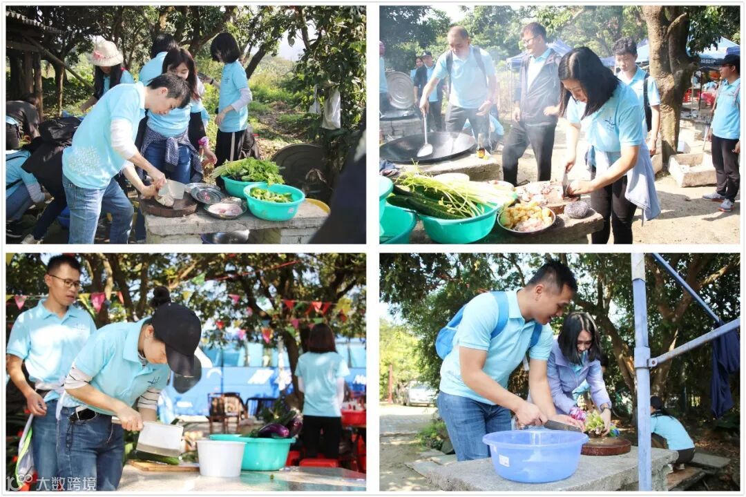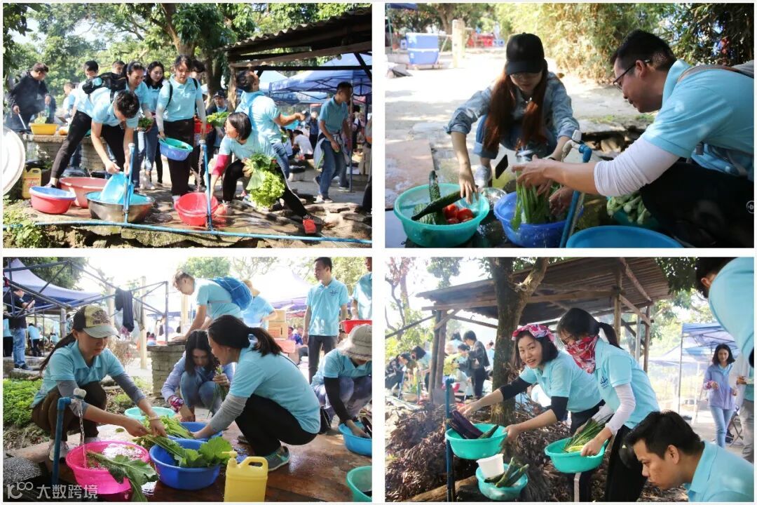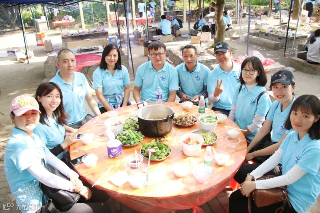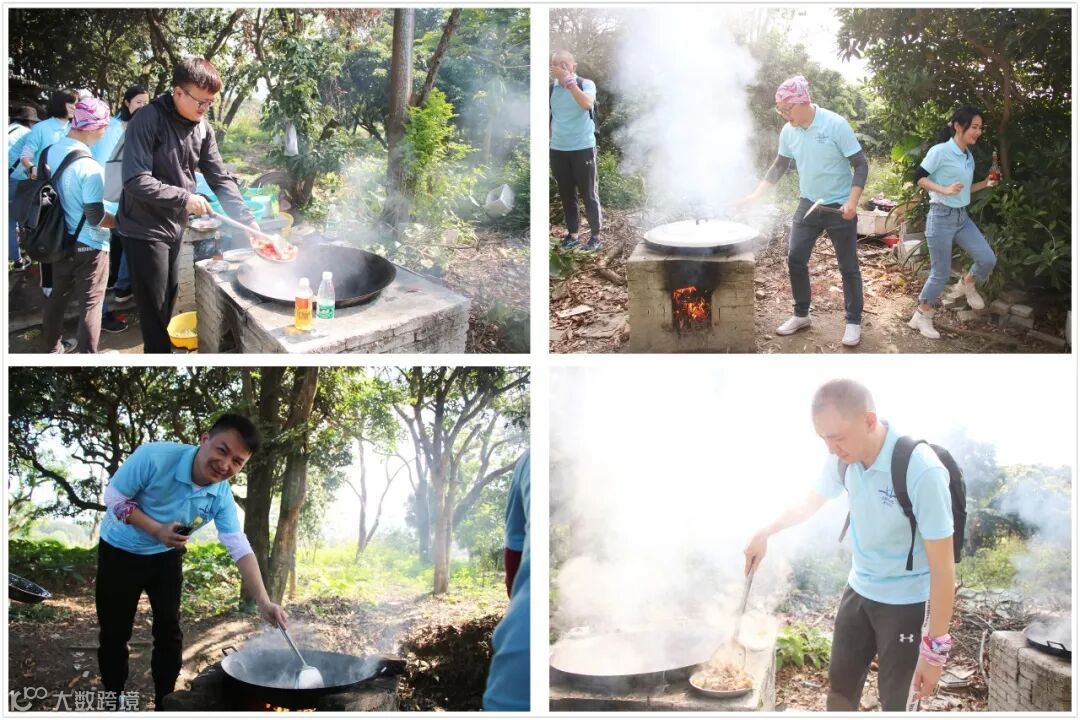 晌午时分,参加完破冰活动的大家已经饥肠辘辘,在风景优美的环境里,最适合的莫过于来一场户外野炊厨艺PK。每一组的小伙伴分配好工作后,立马开始忙碌起来,劈柴生火、洗菜刷锅、烧菜煮饭,大家分工明确,安排有序,都为中午的大餐做准备。