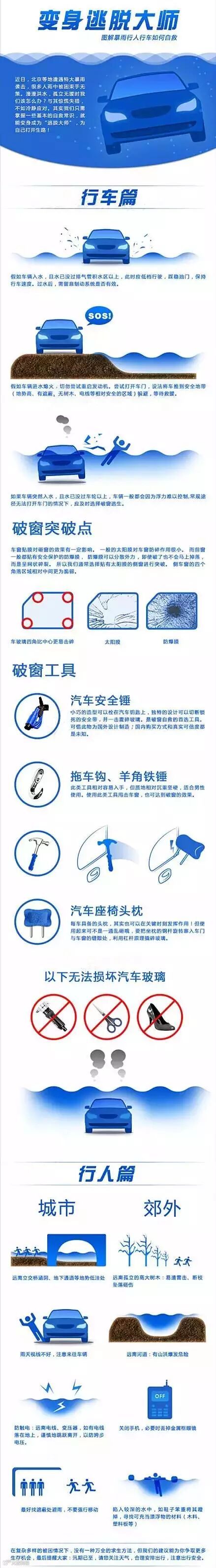 暴雨行人行车如何自救?