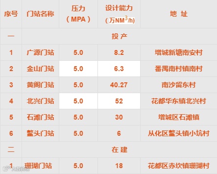 广州市天然气依靠广东省强大的天然气供应能力,建设了六个高压门站,近期拟建设1个高压门站。