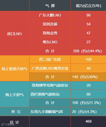 另外,国家核准在建或计划近期建设的项目3项,包括中石油深圳LNG调峰站(约40亿立方米/年),中石油西气东输三线闽粤支干线(设计输气能力约60亿立方米/年),中石化新疆煤制气外输管道广东段(设计输气能力约300亿立方米/年,其中供广东约85亿立方米/年)等。