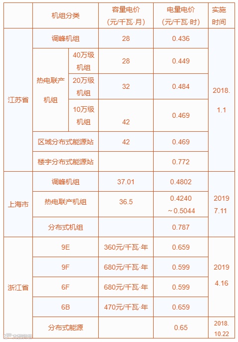 广州市燃气机组上网电价执行广东省燃气机组上网电价0.665元/kw·h,采用单一上网电价机制。但国内一些省市为鼓励燃气机组发展,经过探索,从单一上网电价调整为两部制电价,具体情况如下表: