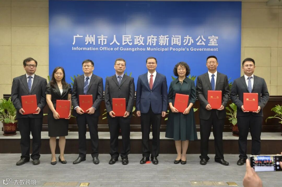 市大湾区办陈建荣常务副主任(中)、市委宣传部朱小燚副部长(左一)、广州开发区党工委委员顾晓斌(右一)、南沙区副区长孙勇(左二)等出席。