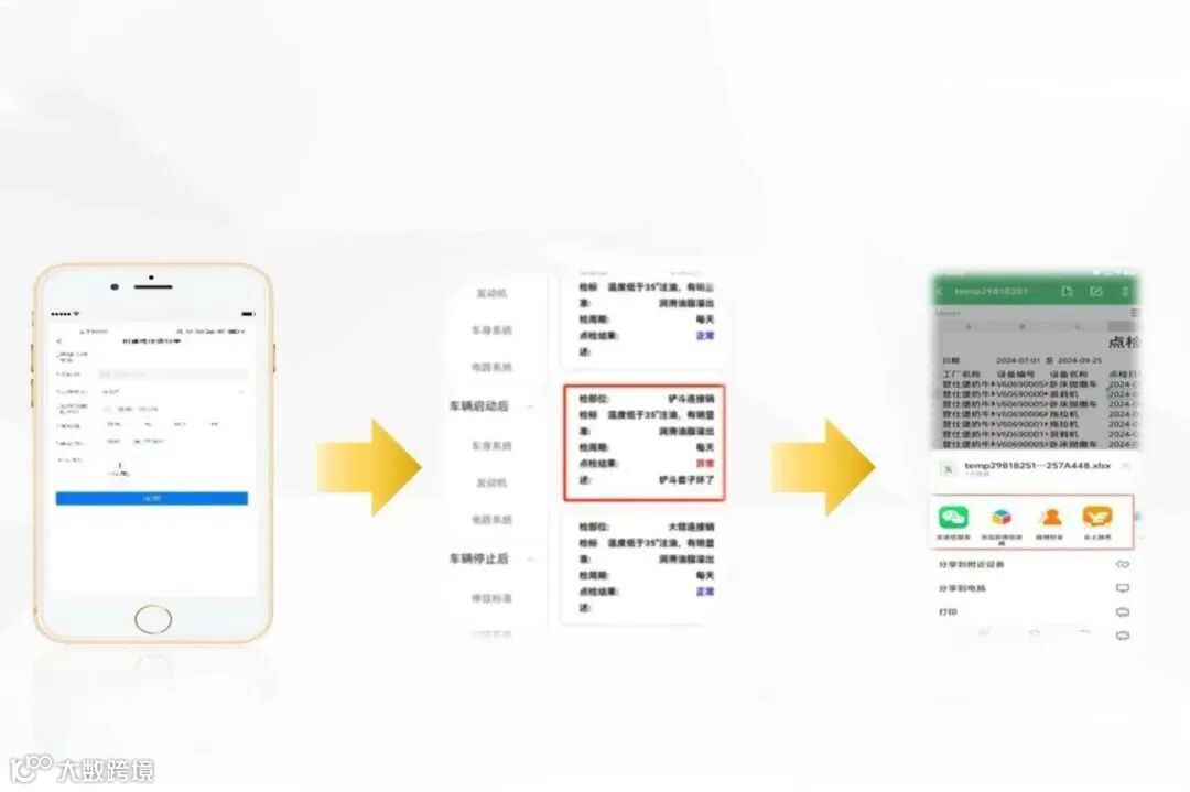 1.点检线上化,通过手机端APP扫描设备上二维码进行点检,点检人与设备进行绑定;一部手机可完成从点检到维修单关闭的全部流程。