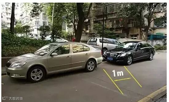 3、当车头边缘线与前车保险杆上沿重合,两车之间的距离大概是1米,真的不建议大家这么近距离跟车,已经是极限距离了!!稍不留意就会追尾。