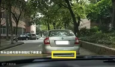 2、当车头边缘线与前车保险杆下沿重合时,只适合两车之间的距离大概是2.4米,在市区拥堵路段,这个车距距离相对安全。