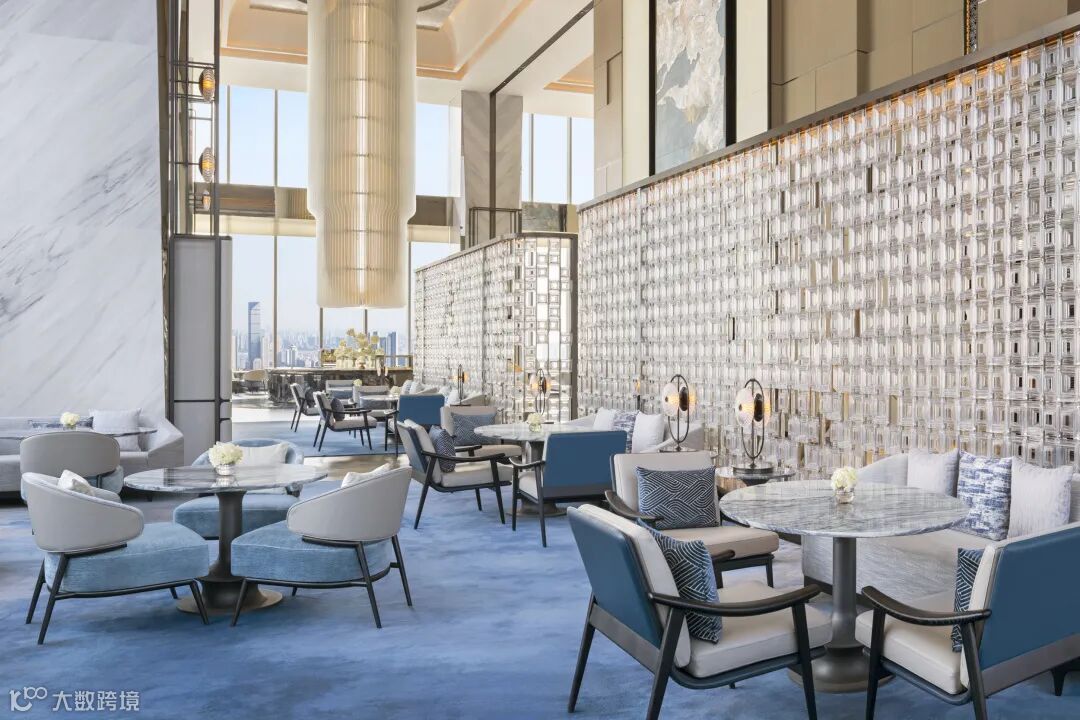 酒店设有204间客房与套房,均位于48层及以上,全景视野可尽览长江壮阔与城市天际,与综合体超甲级写字楼的云端办公视野形成呼应。客房以“云端居所”为理念,蓝白银色主调搭配樱花灯饰、纸雕艺术等楚韵细节,尽显雅致格调;270平方米套房以私邸尊享格调,为宾客群提供宁静而尊崇的居停体验;行政楼层宾客可专享56层行政酒廊,每日五次精致餐饮礼遇,为商务洽谈、圈层交流提供高端场景。此外,丽思儿童项目通过趣味互动,引领家庭客群领略武汉文化底蕴,让服务覆盖全龄层。