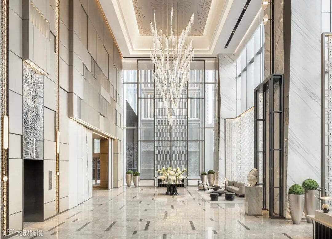 酒店由伦敦KCA国际事务所与深圳CCD郑中设计事务所两大顶尖团队联袂操刀,以“流光楚韵”为设计核心,将武汉江河交汇的城市气韵与楚地文化精髓转化为当代空间语言,成为综合体极具辨识度的文化标识。流畅线条勾勒江水灵动之态,层叠材质彰显楚文化的含蓄典雅。东湖烟雨的静谧、云梦泽境的生机、编钟礼乐的历史回响与楚舞纹样的当代演绎,交织于空间细节之中,引领宾客在光影与艺术之间展开一段以“鸿鹄东来”为主题的云端艺旅。