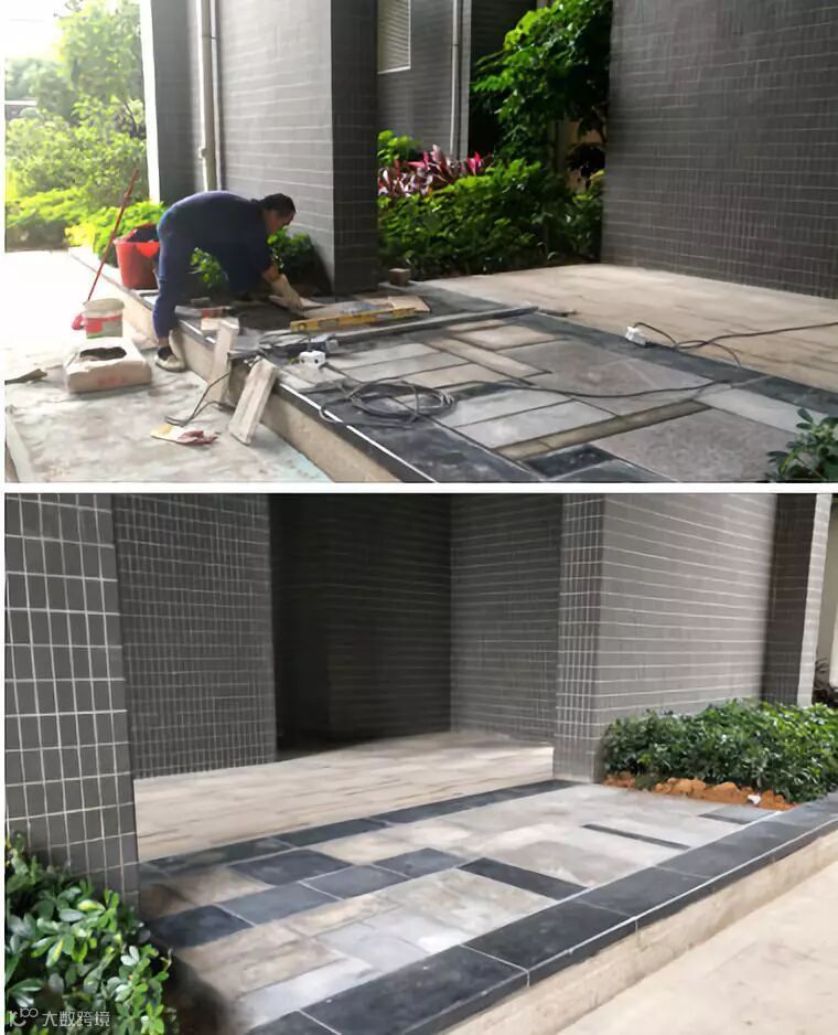 外墙护栏、小区大门、中庭喷泉景观木、大堂铁制饰品刷漆翻新。