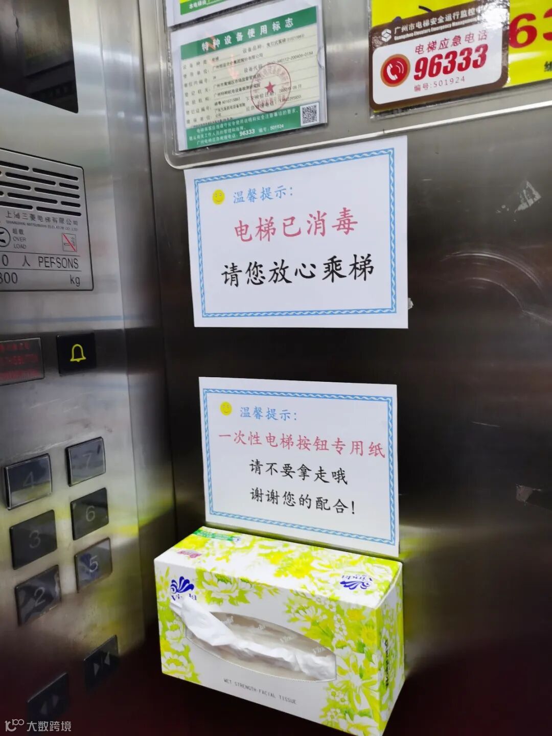同时,为保证员工及租户的乘梯安全,除了坚持循环消毒外,在电梯内张贴温馨提醒,备有纸巾、垃圾桶,避免与按键有直接的接触。