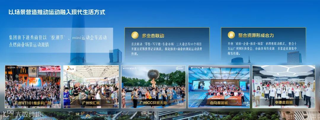 越秀商管联动多个商业项目开展运动吉尼斯挑战;风行乳业举办首届广州职工“鲜”运会,打造全民健身嘉年华。运动场景不断从社区延伸至商圈、街区和公共空间。