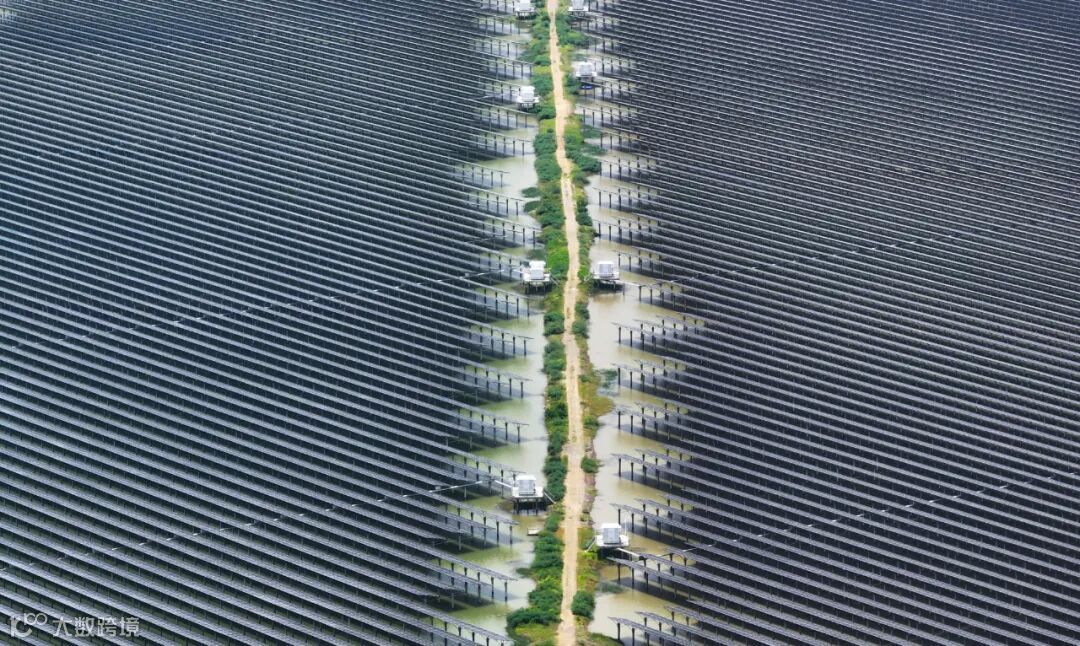 据悉,该项目占地7000余亩,2021年并网发电,当时是粤港澳大湾区单体连片规模最大的渔光互补一体化项目。