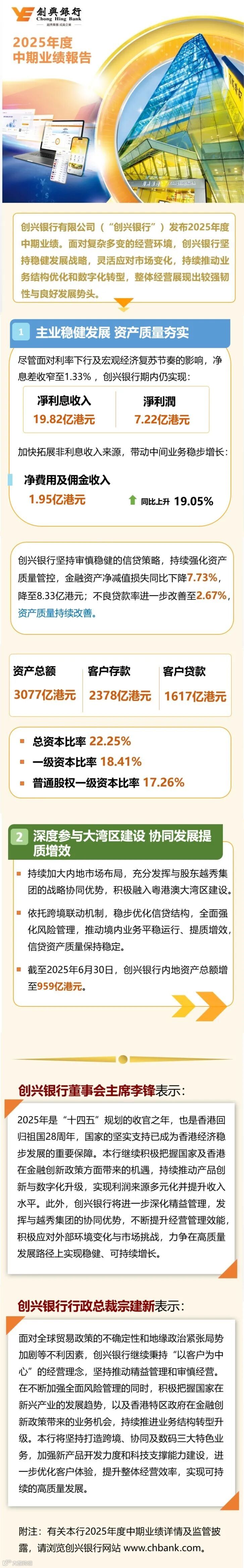 创兴银行公布2025年度中期业绩