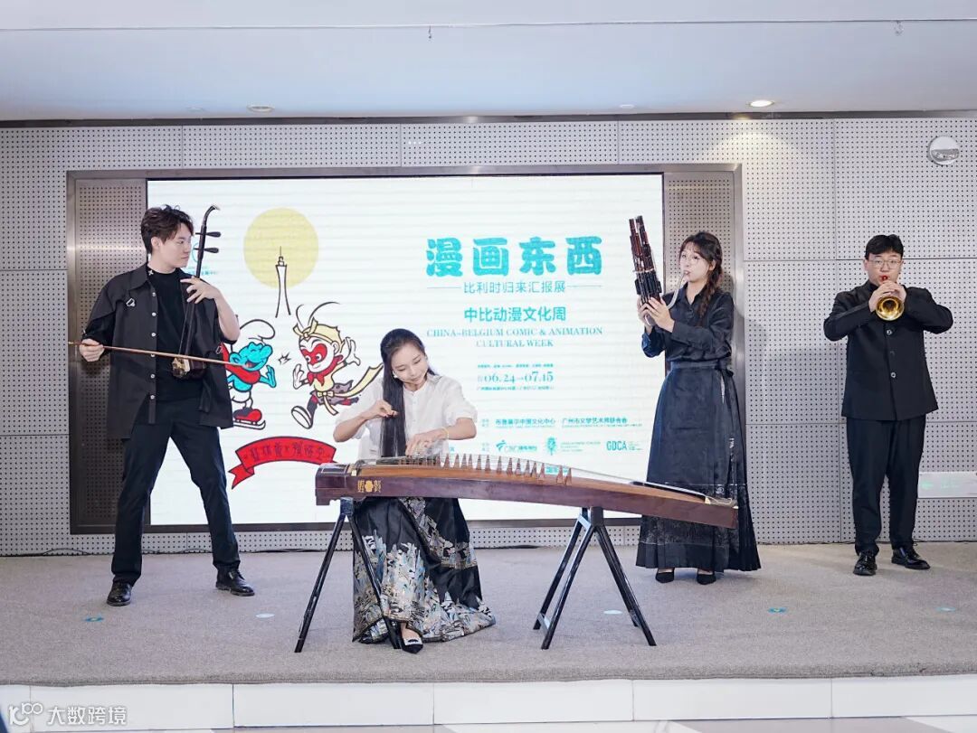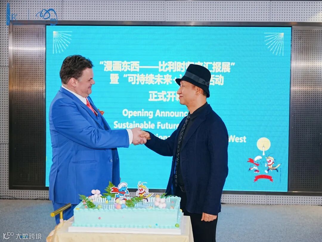 令人惊喜的是,“漫画东西——比利时归来汇报展”暨“可持续未来+计划”开幕式现场还邀请了1983年版《蓝精灵》TV动画译制片主创艺术家出场。他们是译制导演王笛、“格格巫”配音张大力,40年后老战友们再聚首,感动人心。同时,广东卫视《国乐大典》乐手出场,激情演奏了代表中比友谊的《蓝精灵之歌》协奏曲,唤起全场观众美好的童年回忆。