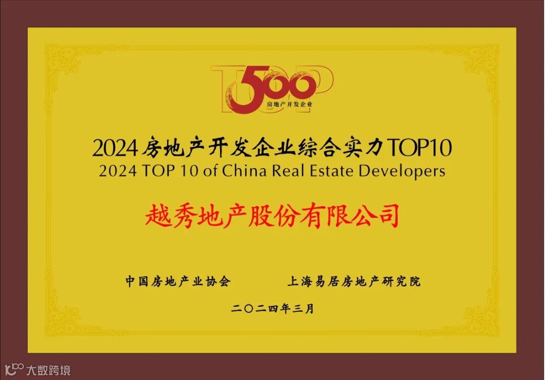 近日,由中国房地产业协会、上海易居房地产研究院共同主办的2024房地产开发企业综合实力测评正式发布成果。越秀地产凭借突出的综合实力,位列《2024房地产开发企业综合实力TOP500》第9位,相比去年上升5位,首次进入十强榜单。