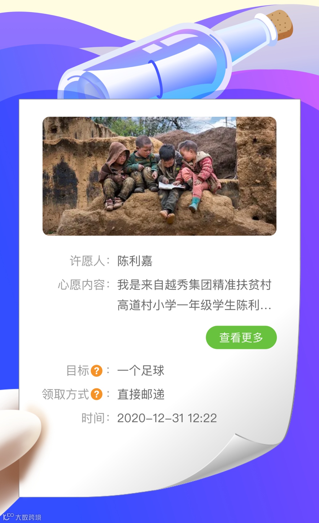 除了参与公益活动,您还可以领取心愿瓶去帮助孩子们。