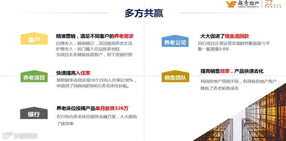 通过与农行的合作,首创养老床位银行按揭产品,降低了客户资金压力和风险。