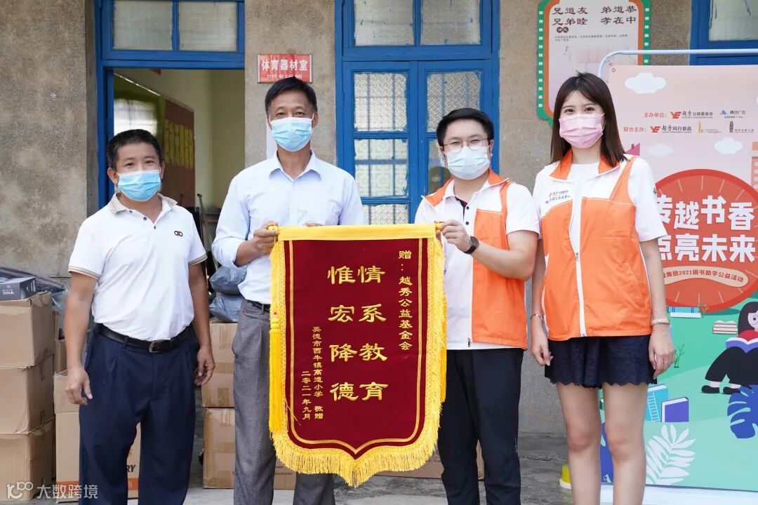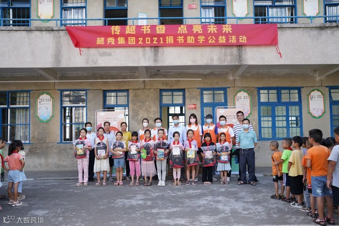 捐赠仪式上,校方代表与越秀公益基金会代表分别上台领取物资与接受锦旗,并进行合影留念。点滴之爱,汇聚成海,一同守护孩子们的未来,本次捐书助学公益活动圆满完成。