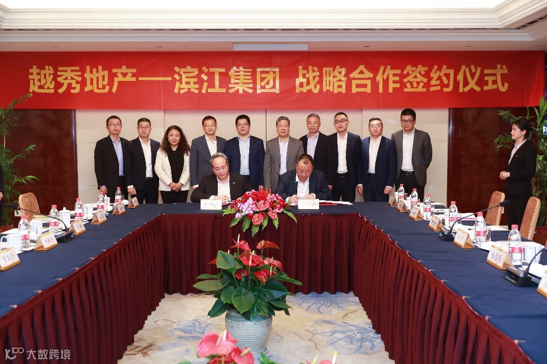 4月14日上午,越秀地产与滨江集团在杭州举办战略合作签约仪式,越秀集团副董事长、总经理叶珊瑚与滨江集团董事长戚金兴等双方高管出席仪式。越秀地产总经理林峰与滨江集团总裁朱慧明代表双方共同签署战略合作协议。